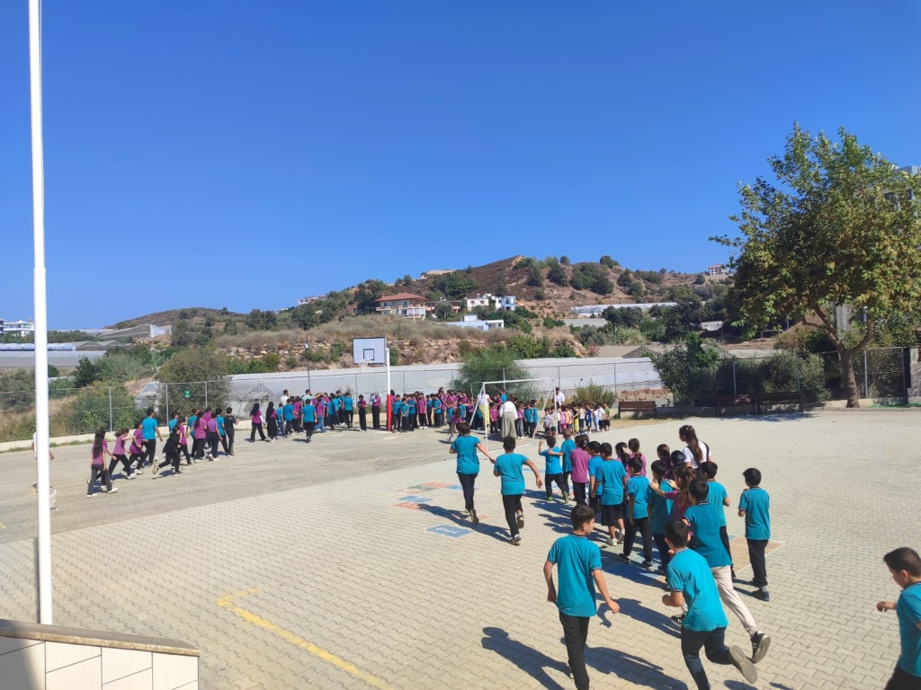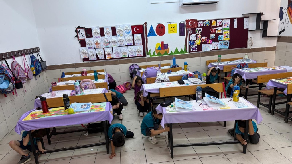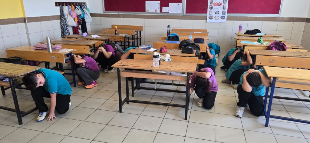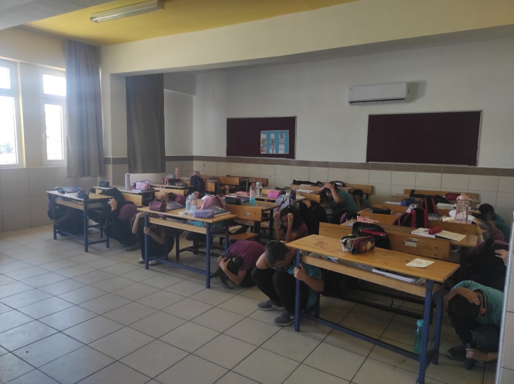 Okulumuzda deprem tatbikatı yapıldı. Siren sesinin çalmasıyla öğrenciler tahliye edildi ve bahçedeki toplanma alanında toplandılar.